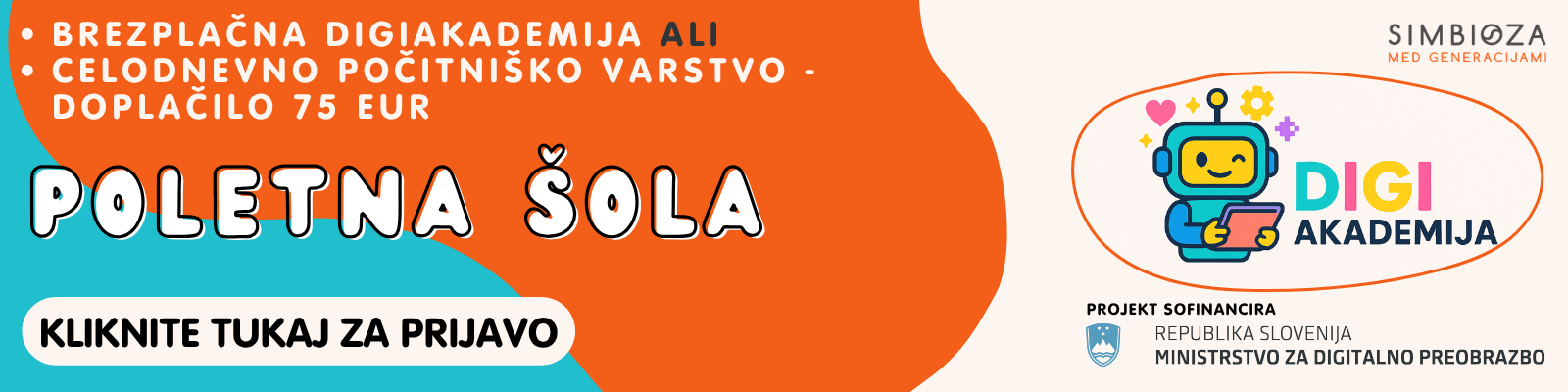 Letošnje poletje osnovnošolskim otrokom (6 – 12 let) nudimo kvalitetne vsebine na področju LEGO robotike, programiranja v Scratch, spoznavanje STEM poklicev, ustvarjanja digitalnih vsebin in reševanja problemov ter jih opolnomočimo za varno brskanje po spletu, komuniciranje in sodelovanje z drugimi, povsem BREZPLAČNO.