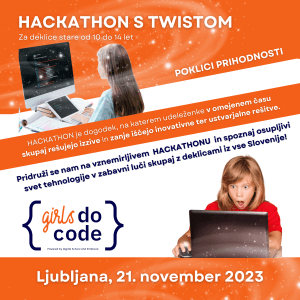 Vabimo deklice starosti od 10 do 14 let iz vse Slovenije, da se nam pridružijo na vznemirljivem in zabavnem HACKATONU...