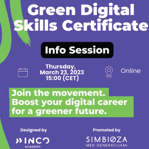 Simbioza v sodelovanju z Akademijo INCO vabi zainteresirane na informativno srečanje o programu za pridobivanje certifikata Green Digital Skills, ki...